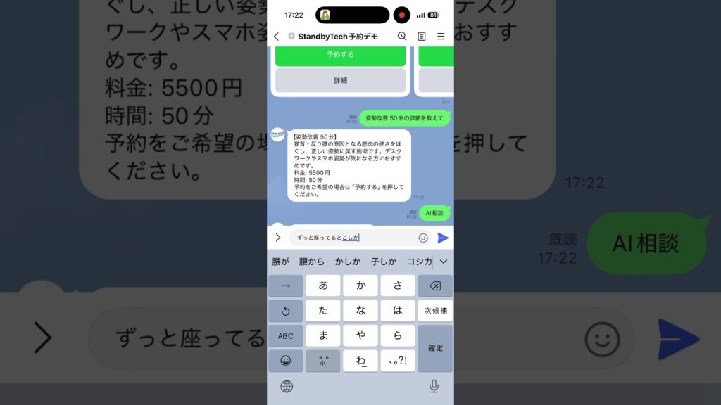 LINEで予約もAI相談も完結!店舗向け自動接客チャットボットのデモ画面