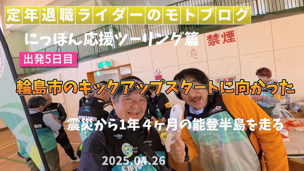 前回動画で、渋峠を超えたふたさん。4日目は、上越妙高から高岡市に入り、今日は、輪島市で行われるにっぽん応援ツーリングキックアップミーティングに参加するために、震災後の能登半島を走り、ミーティングとボランティアに参加しました。