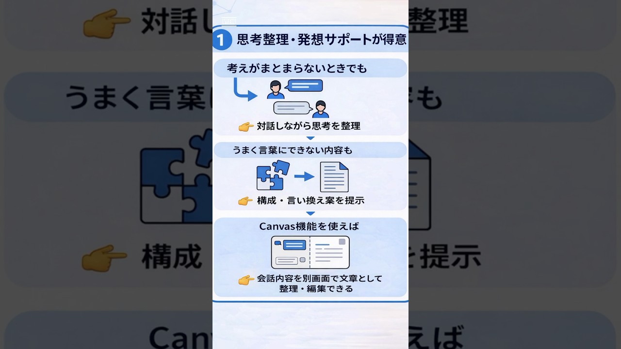 このショートは、ChatGPTを使って「考える負担・作業の手間・判断の迷い」をまとめて減らす方法を図解で紹介します。