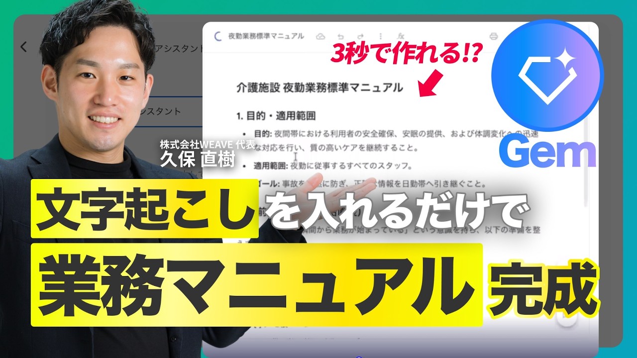 #生成AI #googlegemini #gemini #gems #ジェミニ #ジェム #マニュアル作成 #業務マニュアル作成 #文字起こし #業務効率化 #自動化