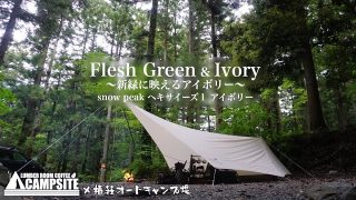 新緑に映えるsnow peak ヘキサイーズ1アイボリー in 椿荘オートキャンプ場