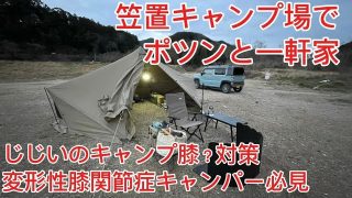 【笠置キャンプ場】変形性膝関節症の痛みに悩みながら、寒の戻りの中でキャンプです。