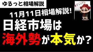【11月11日のゆるっと相場解説】日経平均株価は海外勢がここから本気買いしてくるのか?ズボラ株投資