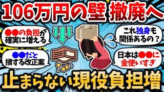 【2chお金スレ】【悲報】「年収106万円の壁」撤廃へ。多くの現役世代が負担増。資産形成の難易度が本格的に上がり始める。【年収の壁・103万・106万・130万・178万】【2ch有益スレ】