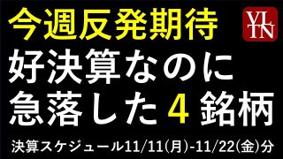 好決算なのに急落した4銘柄と、今週・来週の決算スケジュール~あす上がる株。最新の日本株情報。高配当株の株価やデイトレ情報~