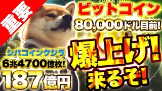 【仮想通貨バブル来るぞ!】ビットコイン80,000ドル目前!シバコインクジラが動き出す!6兆4700億枚、総額187億2300万円分の取引で爆上げ来るか!?